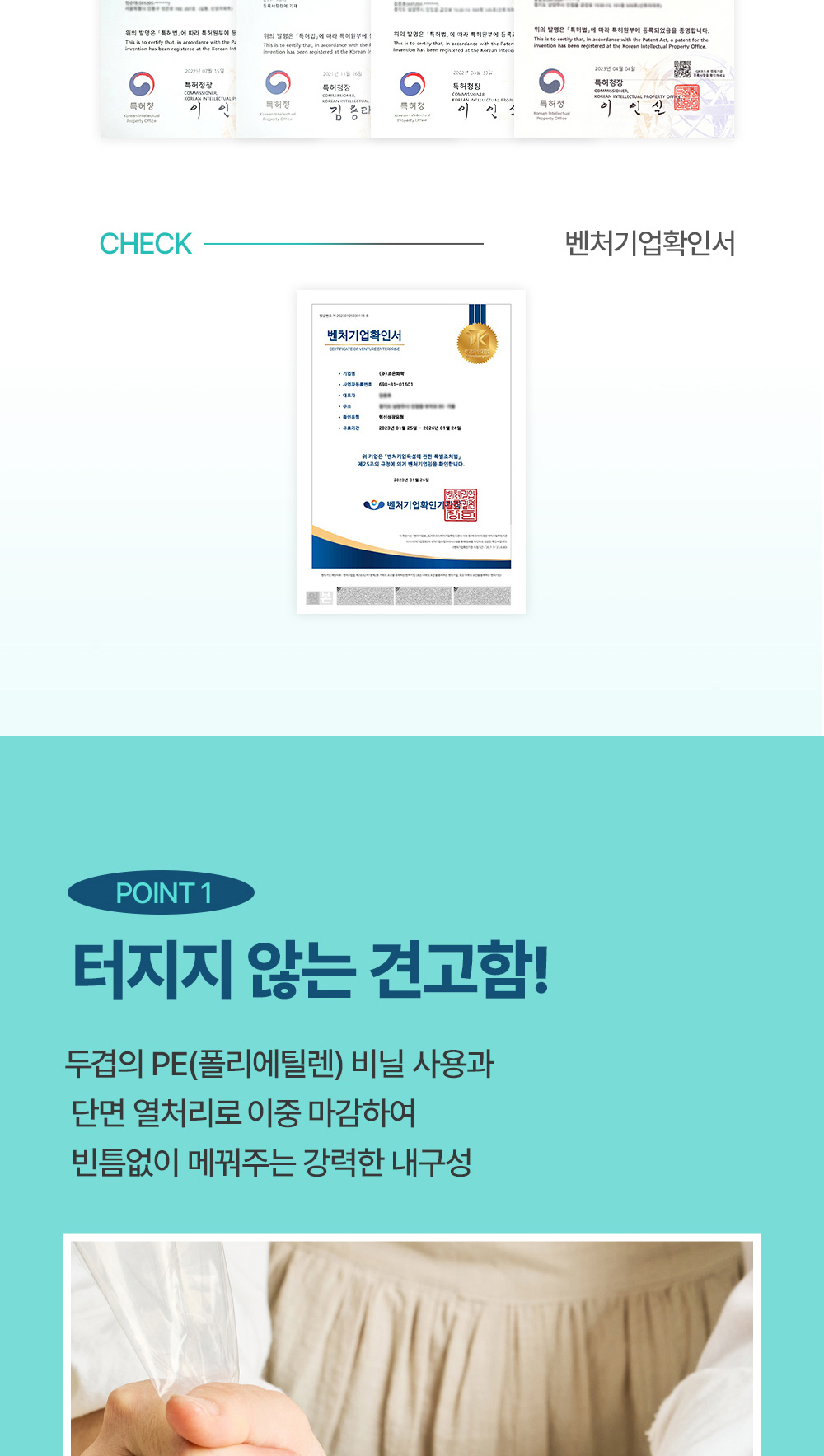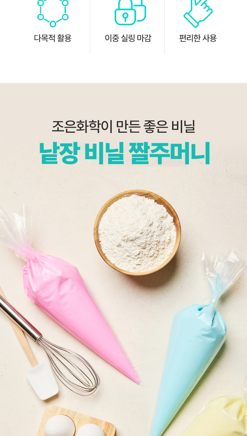 두 겹의 PE 비닐과 이중 실링 구조로 제작되어