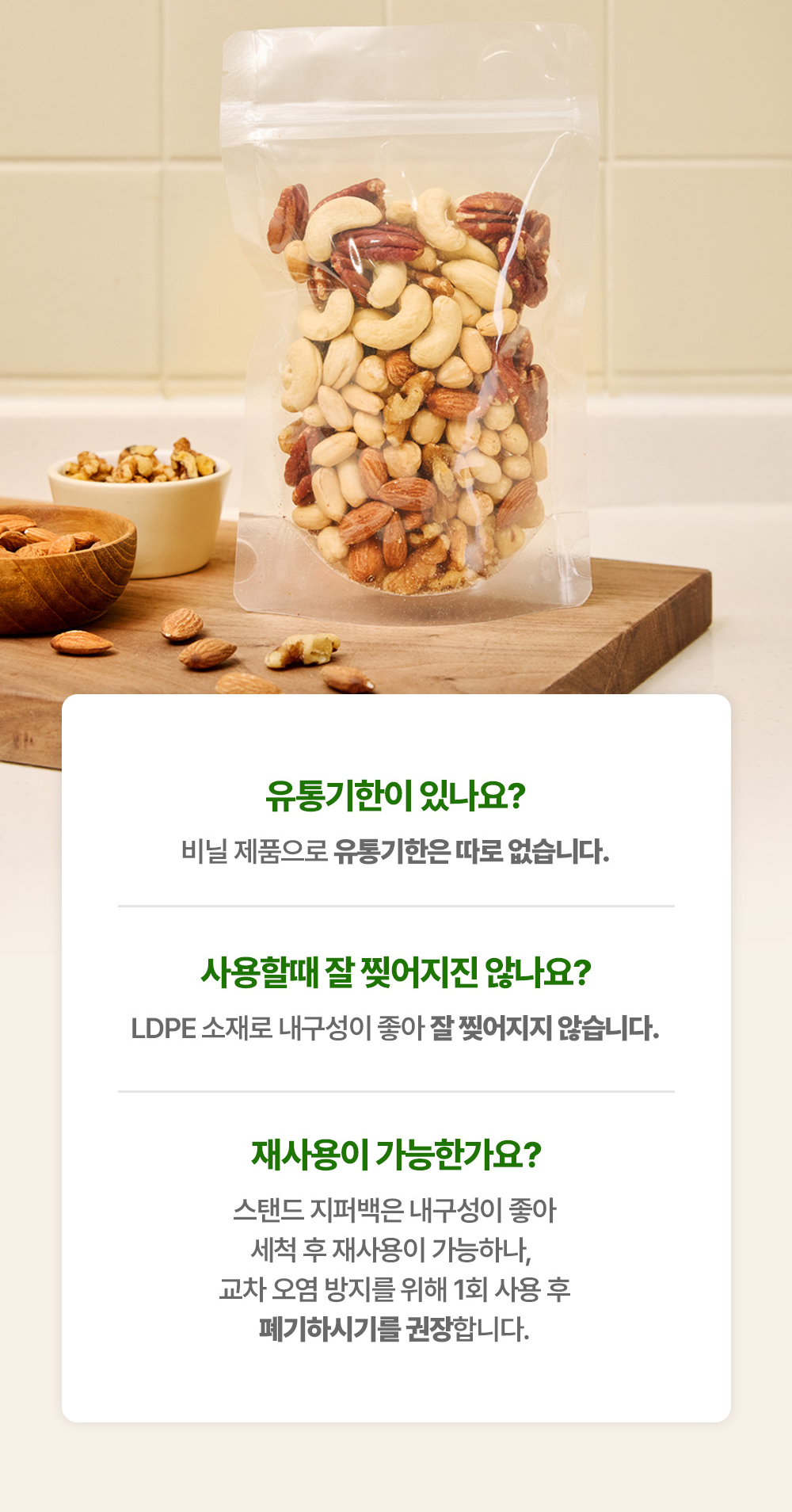 지퍼락 방식으로 밀폐력이 우수해 외부 공기 유입을 효과적으로 차단하며, 식품 포장부터 소형 제품 보관까지 안정적인 사용이 가능합니다.